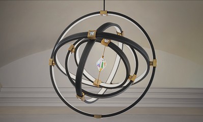 Express yourself in this artistic, rotating blend of light and movement in space. The stitched black leather bands illuminate uniformly from within. In the nucleus of this dynamic piece is a central crystal that illuminates with an LED uplight. A head-turning, attention getter.